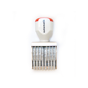 Práctico Timbre Numerador Manual con bandas de goma intercambiables. Su uso se acompaña de un tampón de tinta para sellos de goma Automatik.