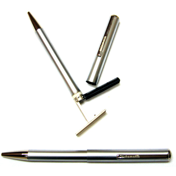 Fino y elegante Bolígrafo, el cual tiene un práctico sello de goma en su parte posterior. Está especialmente pensado para aquellas personas que disfrutan de la elegancia de un sello personal en cada uno de sus documentos.