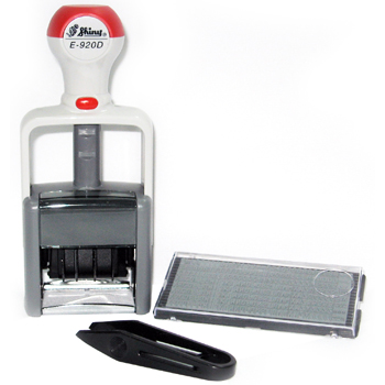 Práctico Timbre Fechador Manual con bandas de goma intercambiables. Su uso se acompaña de un tampón de tinta para sellos de goma Automatik T2.