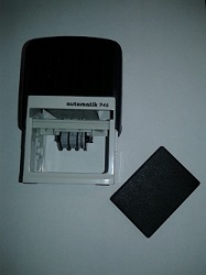Timbre de Goma montado en una practica caja automática,la cual posee un sistema de fechas al centro de la placa de 30mm. el cual permite timbrar diferentes tipos de papel. Es apto para alto tráfico.