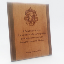 Galvano de madera tipo Raulí, bicolor, para reconocimiento. Mediano.