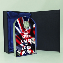 CRISTAL CIRCULAR CON BASE PLANA Y RELOJ Impreso