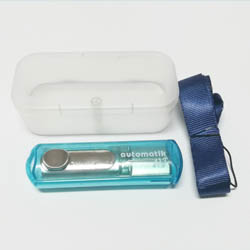 Práctico Timbre Tipo sello de bolsillo, manual, con tampón incluído, el cual puede ser recargado con la tinta para sellos de goma Automatik o en el caso de recambio sólo puede ser efectuado por el fabricante.