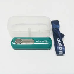 Práctico Timbre Tipo sello de bolsillo, manual, con tampón incluído, el cual puede ser recargado con la tinta para sellos de goma Automatik