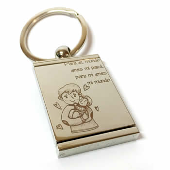 Llavero Metálico Porta-Foto. Presentación en estuche laminado negro con cuna aterciopelada.
