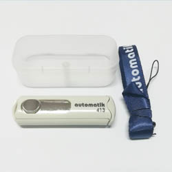 Práctico Timbre Tipo sello de bolsillo, manual, con tampón incluído, el cual puede ser recargado con la tinta para sellos de goma Automatik o en el caso de recambio sólo puede ser efectuafo por el fabricante.