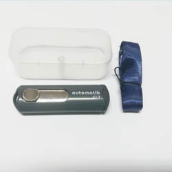 Práctico Timbre Tipo sello de bolsillo, manual, con tampón incluído, el cual puede ser recargado con la tinta para sellos de goma Automatik o en el caso de recambio sólo puede ser efectuado por el fabricante.