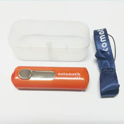Práctico Timbre Tipo sello de bolsillo, manual, con tampón incluído, el cual puede ser recargado con la tinta para sellos de goma Automatik o en el caso de recambio sólo puede ser efectuado por el fabricante.